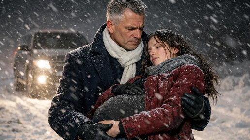 Матвей почувствовал удар раньше, чем увидел. Глухой — как мешок об капот. Машина замерла. Он вышел. Снег бил в лицо горизонтально, ничего не видно. Фары выхватили силуэт у обочины — девушка лежала на боку. Он присел. Дышит. Лицо белое, губы синие, куртка насквозь мокрая. Вокруг ни души — только снег и темнота. Поднял её на руки — легкая, почти невесомая. Уложил на заднее сиденье, накрыл пальто. В больницу нельзя. Вопросы, полиция, его имя по всем каналам к утру. Он развернул машину к поселку. Врач приехал через двадцать минут...