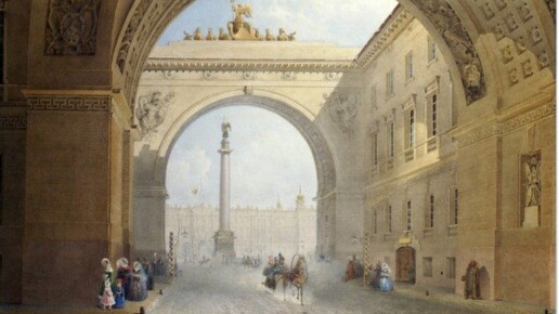 Здание Главного штаба. Историческое здание, на Дворцовой пл.в Петербурге. Строительство с 1819 по 1829 год. Архитектор: К. И. Росси. Скульпторы: С. С. Пименов, В. И. Демут-Малиновский.