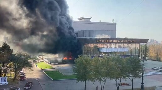 По словам очевидцев, на месте периодически слышны громкие хлопки, в здании началось обрушение конструкций. Площадь пожара стремительно растет и уже достигла 4 тыс. кв. м. По злой иронии судьбы театр располагается прямо напротив пожарной части. Юлия Литвиненко В Хабаровске вспыхнул крупный пожар: горит краевой музыкальный театр на улице Карла Маркса. Как сообщает Телеграм-канал SHOT, здание полностью охвачено огнем, а огромный столб дыма виден из разных районов города. По данным МЧС РФ, загорелась обшивка и кровля здания...