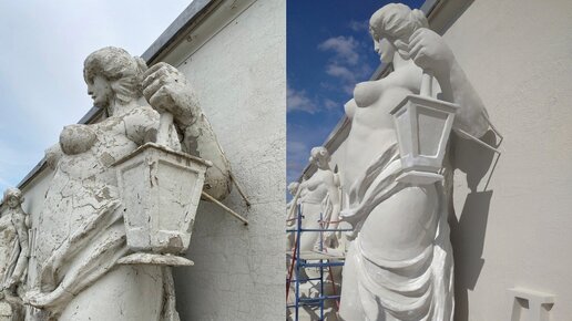 Скульптурам на фасаде ОмГУПСа вернули потерянные пальцы