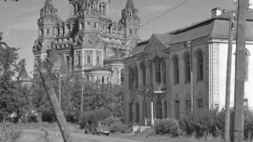 На представленной фотографии, сделанной в 1943 году, видны собор Петра и Павла и здание ратуши.