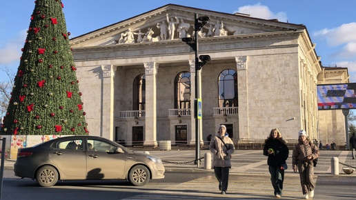 В Мариуполе прошла официальная церемония открытия восстановленного драматического театра. Новое здание появилось на месте разрушенного. Вместо посеченного осколками и потемневшего от копоти фасада черного зева сгоревшего вестибюля и провала на месте сцены и зрительного зала теперь зрителей встречает новенькая облицовка травертином и отреставрированные скульптуры металлурга, шахтера, колхозницы и нимф на фронтоне. А внутри - мраморные колонны и лестницы с коврами, портреты актеров и режиссеров на стенах, выставка картин художников из Санкт-Петербурга...