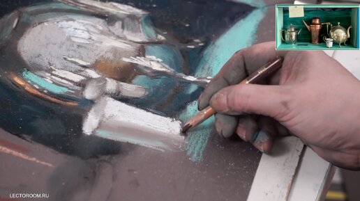 Мастер-класс по пастельной живописи: Создание натюрморта с чайниками на бирюзовой полке
