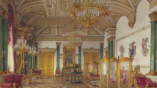Зимний дворец славится своими пышными интерьерами, но все же некоторые залы как-то особенно изящны и элегантны. Такими словами можно охарактеризовать Малахитовую Гостиную. Малахитовая гостиная в Эрмитаже. Фото автора. Малахитовый зал, находящийся в северо-западной части Зимнего Дворца, относился к личным покоям Александры Федоровны - супруги императора Николая I. Этот интерьер в числе остальных пострадал в пожаре, случившемся в Зимнем дворце в декабре 1837 года. Воссозданием императорской резиденции руководил тогда Василий Петрович Стасов...