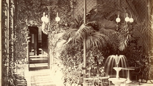 Дорогие друзья! Сегодня мы посетим зимний сад воронцовского дворца. Первоначально это была крытая галерея, которая вела из центрального корпуса дворца в столовый корпус. Сперва там предполагалась бильярдная. Но позже её перенесли в центральный корпус, а в галерее стояли лёгкие кресла и столики, чтобы хозяева и их гости могли полюбоваться морем и окружающим дворец парком. Но, довольно быстро галерею решено было застеклить, а внутри создать неимоверно модный в те времена - зимний сад. Такие оранжереи были необыкновенно популярны и практически ни один дворец не обходился без такой оранжереи...