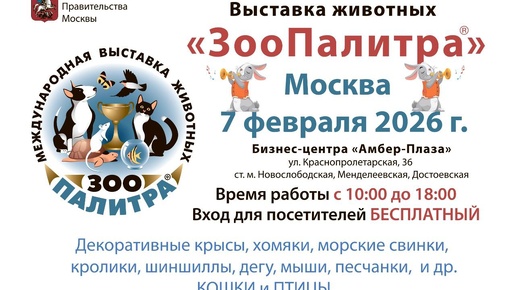 🐹7 февраля 2026 года в Москве пройдёт выставка домашних животных «ЗооПалитра - Зима 2026