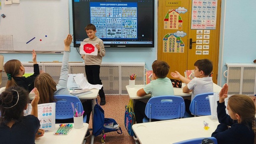 Вот это да! Ученики 2Б сегодня поменялись ролями с учителем и сами провели урок по ПДД! 🤩 🚔 Вместо скучной теории — настоящий практикум: ребята стали инспекторами и устроили друг для другу мини-экзамен на знание дорожных знаков...