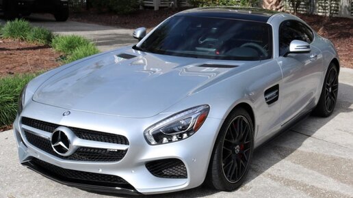 Это 2016 Mercedes-Benz AMG GT S. Мощность идет от 4,0-литрового V8 с двумя турбонаддувами в паре с семиступенчатой трансмиссией с двумя сцеплениями, а автомобиль отделан серебром поверх красно-черного кожаного салона...