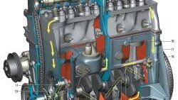 Особенности конструкции Система смазки двигателя комбинированная – под давлением смазываются коренные и шатунные подшипники коленчатого вала, подшипники распределительного вала, вала привода масляного насоса, а также винтовые шестерни привода масляного насоса. Остальные детали системы смазываются разбрызгиванием. Масляный насос шестеренчатого типа, односекционный, приводится от вала привода масляного насоса парой винтовых шестерен. Очищается масло полнопоточным масляным фильтром. Контролируют состояние системы смазки с помощью сигнальной лампы аварийного падения давления...