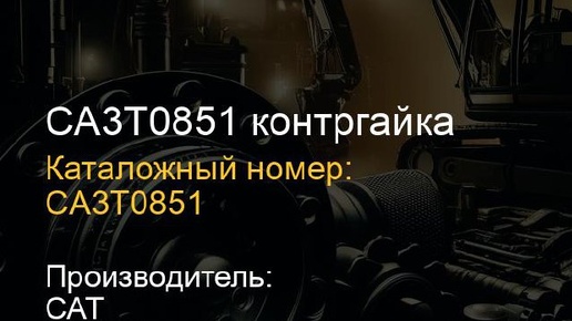 🔧 Запчасть: CA3T0851 контргайка 📦 Артикул: `CA3T0851` 🏭 Производитель: CAT 🛒 Где доступна: ▫️ 🌐 [Магазин 1] (https://miningmarket.ru/parts/ca3t0851-kontrgayka) ▫️ 🌐 [Магазин 2] (https://parts-price.ru/catalog/ca3t0851) ▫️ 🌐 [Магазин 3] (https://telegra...