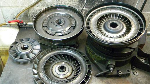 Устройство АКПП 1 - Гидротрансформатор ( “бублик”). По своим функциям напоминает сцепление при механической КПП. 2 - Планетарная передача. Изменяет передаточное отношение в АКПП при переключении передач. 3 - Фрикционы и тормозная лента. Непосредственно переключают передачи. 4 - Блок клапанов. Как правило, выполнен в виде металлической пластины с системой каналов. В каналах установлены клапаны, контролирующие давление и направление течения масла. Служит для управления фрикционами и тормозной лентой...