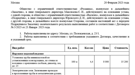 Акт сдачи-приемки выполненных работ - образец на 2022-2023 годы