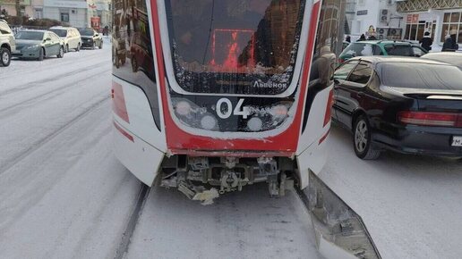 Сегодня днем в Улан-Удэ на улице Гагарина в направлении Элеватора произошло ДТП с участием автомобиля и трамвая. Об этом сообщили в управлении трамваев. Выяснилось, что за рулем автомобиля без номеров был водитель без прав. Виновник ДТП въехал в задний бампер вагона, отчего тот отвалился. Сам автомобиль также получил значительный урон — огромную вмятину на правой передней части. На месте оперативно сработали сотрудники службы безопасности трамвайного парка совместно с инспекторами ГИБДД...