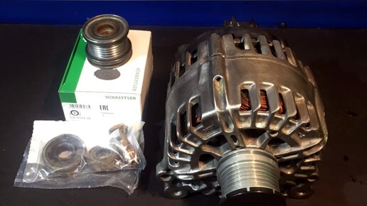 Делают капремонт двигателя, так же сразу производим ревизию генератора. Заменили щетки, коллектор, так же установили новую оригинальную обгонную муфту (старая была в клину) и поменяли комплект подшипников, почистили...