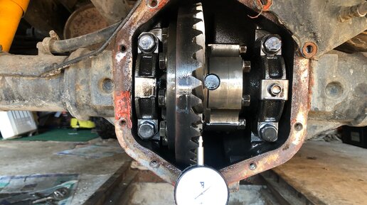 Задний мост гудел все сильней, на скорости свыше 80, появлялась вибрация, были удары по трансмиссии при троганье. При вскрытии обнаружился сильный люфт дифа. Притом, что люфта на хвостовике не было. Все закручено. Внешнее состояние ведущей шестерни отличное. Опять износ на фланце от сальника, ранее уже фланец менял по этой причине, но сальник пока не течет. Ведомая шестерня также на вид в отличном состоянии. Заодно узнал возможную дату сборки машины, вроде в среду, неплохо:) Полуоси также в рабочем состоянии...