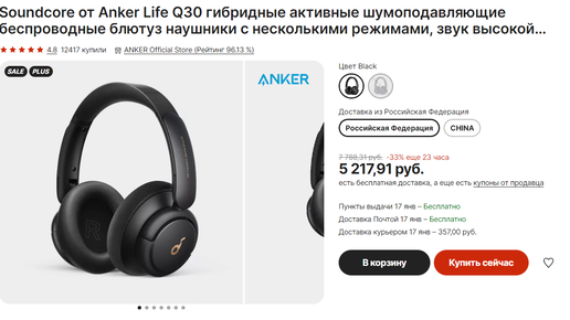 Anker soundcore life Q30 полноразмерые уши с шумодавом по хорошей цене.