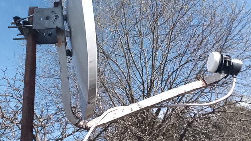 Наш сосед решил снять свою висящую за окном спутниковую антенну. Она у него уже много лет не работает из-за того, что труба от мороза деформировалась и лопнула. Естественно он собрался сдать в металлолом, но я успел выкупить за копейки. Привез в деревню, исправил трубу и собрался проверить работоспособность. Но как-то совсем не хотелось тащить на улицу ресивер и монитор. Решил попытаться навести ее на спутник с помощью простейшего прибора Satfinder. Он работает от напряжения, подаваемого ресивером...