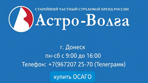 ✅Оформить ОСАГО онлайн: Перейти ✅ Скидка до 30% для пенсионеров и инвалидов ✅Защита от дронов ✅Действие полиса по всей России 1. О компании Астро-Волга в Донецке ДНР 2. Преимущества страховой компании Астро-Волга в Донецке 3. Виды страхования от Астро-Волга в Донецке ДНР 4. Адрес и телефон офиса Астро-Волга в Донецке 5. Отзывы клиентов о страховой компании Астро-Волга Донецк 6. Вопросы и ответы по страхованию в Донецке --- ## О компании Астро-Волга в Донецке ДНР Страховая компания Астро-Волга — это...