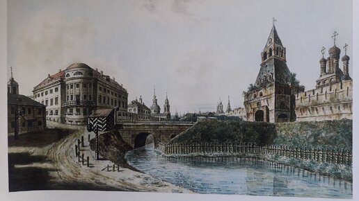 Это не реконструкция, а достоверный пейзаж, написанный с натуры! В 1800 году Павел I откомандировал академика живописи Федора Алексеева «для снятия видов» Москвы. Федор Яковлевич был первым русским мастером ведуты (городских пейзажей). В течение полутора лет Алексеев зарисовывал Первопрестольную вместе с учениками Кунавиным и Мошковым. Осталось несколько десятков акварелей. …десять лет спустя Москва сгорела и восстала из пепла совсем другим городом. Пушкин писал, что в этом месте улицы – моложе красавиц...