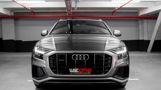 Audi представили Q8 в 2018 году, модель сразу позиционировалась как флагман линейки SUV марки. Инженеры хотели создать автомобиль, который объединит комфорт большого внедорожника и силуэт купе. Поэтому Q8 получил более агрессивный дизайн, широкую решетку радиатора и покатую линию крыши. Фактически именно с него началась новая дизайнерская философия современных Audi. Перед нами Audi Q8 2019 года, выпущенный в апреле. Пробег составляет 87.639 км. Цвет кузова — серый перламутр Daytona Grau, один из самых удачных оттенков для этой модели...