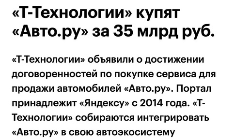 ⚡️ Т-Технологии покупают Авто.ру — компания собирается строить первую в России авто-экосистему 360