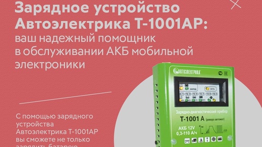 Зарядное устройство Автоэлектрика Т-1001АР: ваш надежный помощник в обслуживании АКБ