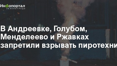 пиротехнику. При этом в самом Зеленограде и его окрестностях, входящих в состав другого подмосковного округа — Химки, такой запрет не вводился. Подробности в публикации Инфопортала подписаться / обсудить...