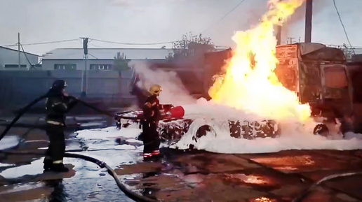 Кадры из Подольска. Там минувшей ночью тушили крупный пожар в автосервисе. Огонь охватил площадь в 1,5 тысячи квадратных метров. Полностью сгорели четыре машины, в том числе грузовики. Не исключено, что причиной ЧП стал поджог...