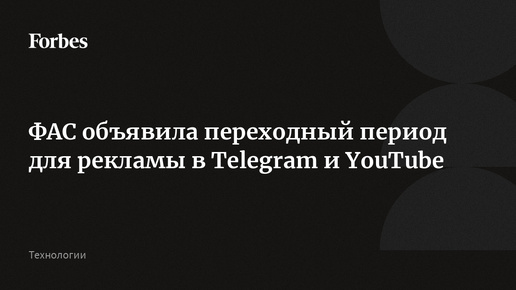 ФАС объявила переходный период для рекламы в Telegram и на YouTube