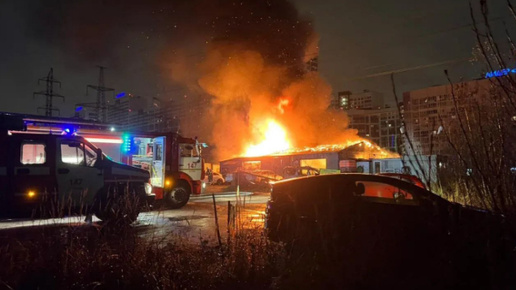 Ночью в Мурино пожар уничтожил автосервис с 5 автомобилями
