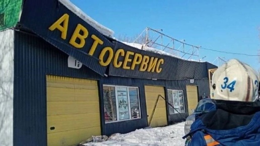 Помещение автосервиса в Новосибирске чуть не рухнуло под тяжестью снега