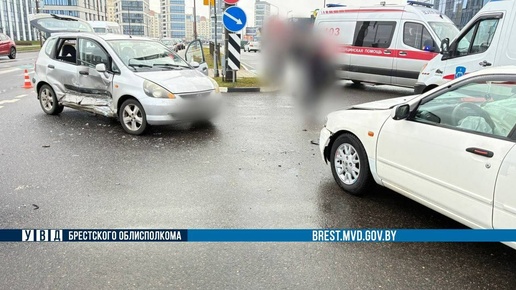 В Бресте на перекрёстке столкнулись Honda и Nissan: пострадали двое детей
