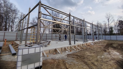 Монтаж каркаса автосервиса размерами 12х25х4,5 м. В п. Нестерово Московской области. Проект и поставка металлоконструкций и ограждающих конструкций осуществлена силами нашей Компании. На текущую дату на площадку отгружена первая партия сэндвич-панелей...