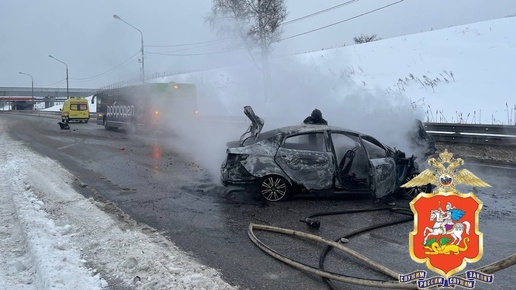 Kia врезалась в автобус и загорелась в Химках