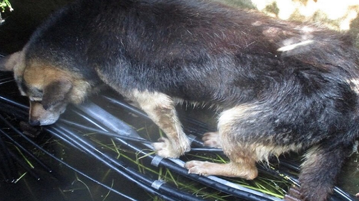 Слепой пёс стоял на проводах двое суток в канализационной шахте. Когда его достали, все ахнули