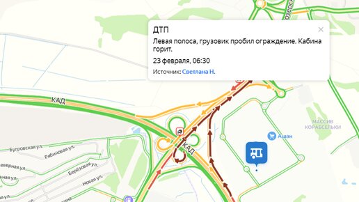 Грузовик въехал в ограждение и сгорел около "Мега Парнас" в Петербурге