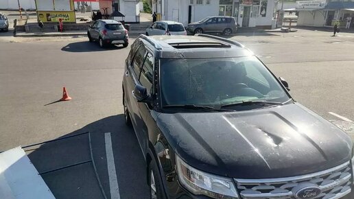 Рынок «Ждановичи», воскресенье. Павильоны работают, покупатели ходят туда-сюда, автомобилисты паркуют автомобили, чтобы сделать покупки. В общем, обычная картина рыночного дня. Вдруг с крыши какого-то павильона падает металлическая конструкция и приземляется на припаркованные авто. Повреждения получают три автомобиля на парковке: Ford Explorer, Opel Zafira и Opel Mokka. Больше всего достается вот этому Ford, он принял основной удар на себя: Как рассказал наш читатель Олег, у автомобиля на капоте сквозная дырка, также повреждены, крыша, люк, лобовое стекло и правая сторона кузова...