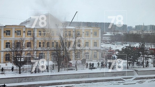 Офисное здание горит на Шкиперском протоке Васильевского острова