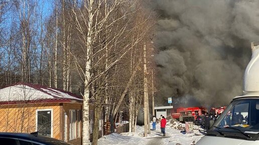 Горящий автосервис перекрыл дорогу в Бугры, внутри взорвался баллон с газом