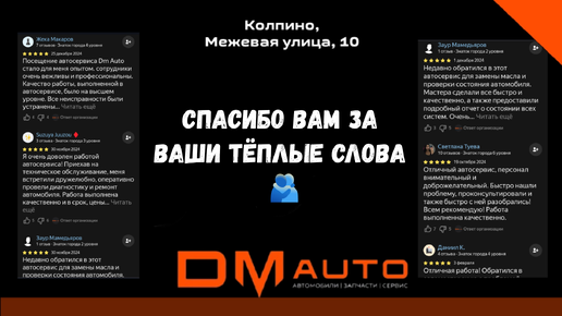 Мы рады, что вы выбираете ДМ Авто! Мы продолжим делать все возможное, чтобы оправдать ваши ожидания и радовать безупречной работой ваших автомобилей...