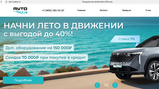 Avto Pulse — это автосалон в Москве. Вероятнее всего, является лендингом для сбора заявок. На владельца есть иски о защите прав потребителей. Больше причин отказаться от покупки авто через данного дилера — читайте в нашем обзоре. В автосалоне на 27 км МКАД внешняя сторона в Москве можно купить новый автомобиль. Каталог дилера включает в себя более 50 популярных марок начиная от отечественных, заканчивая санкционными. Если верить сайту, то каждый автомобиль есть в наличии. Трудно представить здание, площадь которого могла бы вместить такой объем...