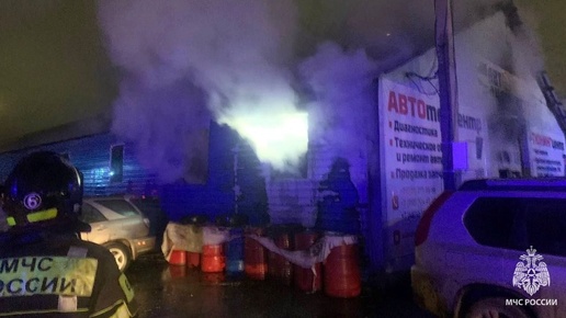 Тульские пожарные ликвидировали ночной пожар в автосервисе