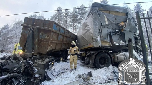 В Энколово столкнулись два грузовика и легковушка: пострадали два водителя