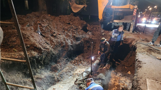 В Павловском Посаде у дома 13 на улице Каляева коммунальные службы ликвидируют аварию на сети отопления. Специалисты сообщили, что вечером 30 сентября произошел технологический инцидент. Без отопления остались более 20 домов. Коммунальщики обнаружили место прорыва трубопровода и провели земляные работы, также им пришлось откачивать воду, чтобы добраться до сетей. Рабочим предстоит демонтировать поврежденный участок. Для этого на место прибыла коммунальная техника: трактор и аварийная машина. Всего заменят два участка трубопровода по шесть метров...