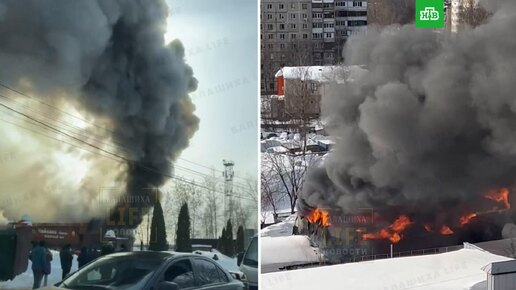 Мощный пожар произошел в здании автосервиса в Балашихе