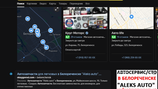 Заказать рекламу 8(989)232-96-93 (WhatsAPP, Telegram) Бюджет: 9 999 р. на месяц. Цель: повысить количество реальных заказчиков, ссылаясь на профиль клиента в справочнике «Окей Город» Площадки: поисковая система Яндекс (без рекламных сетей) Срок проведения: 20.01.23-24.02.23 Портрет заказчика: Нужны местные автовладельцы, которым нужен автосервис и автозапчасти, исключая грузовые. Яндекс Пример объявления в поиске с компьютера и телефона (листайте). Большой баннер с компьютеров - это дополнительный формат...