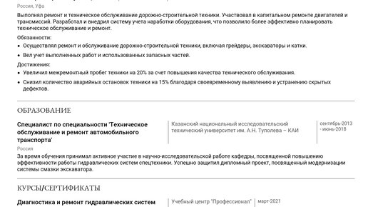 Пример резюме слесаря по ремонту спецтехники 2025 - Как составить