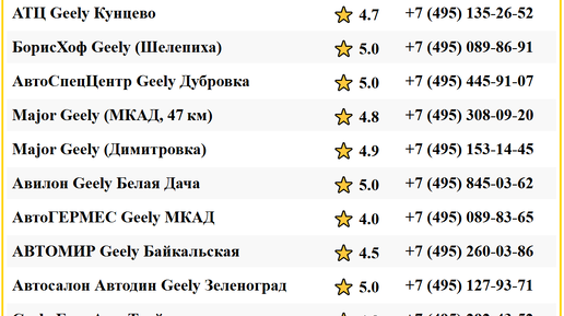 ТОП-10 официальных дилеров Geely в Москве (Рейтинг 2025 года)