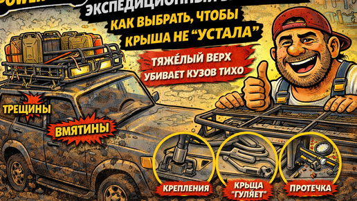 Экспедиционный багажник ставят “чтобы было как у взрослых”: канистры, лопата, палатка, свет на крышу. А потом приезжают с сюрпризами: трещины у креплений, вмятины, течь по рейлингам, свист на трассе и дверь багажника перестала закрываться с первого раза. Крыша “устает” не сразу. Она сначала терпит, потом сдаётся. Сейчас разжую, как выбрать экспедиционный багажник так, чтобы крыша не “устала”, и что именно её добивает. Крыша — это тонкий металл плюс усилители. Она рассчитана на нагрузку, но не на вечный груз и не на удары...