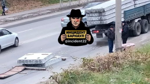 Бетонные плиты вывалились из кузова грузовика на дорогу в Барнауле